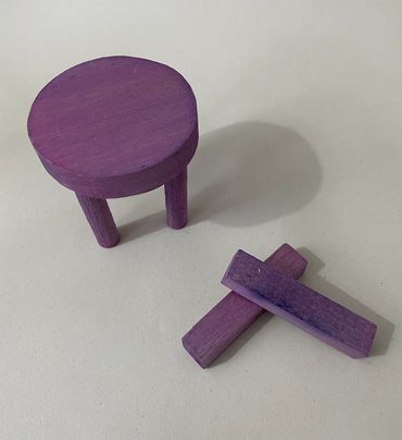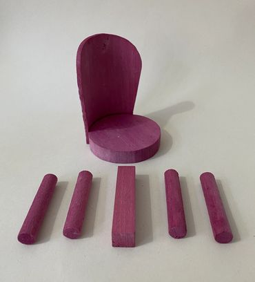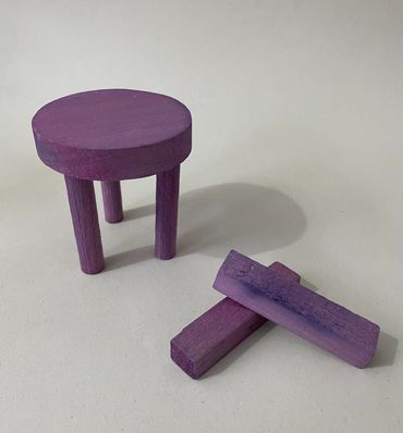 The first chair design was inspired by blackberries and dyed using the same. I was most happy with the results I derived from blackberries. A vibrant shade of magenta that the wood seemed to retain even when exposed to the sun for long intervals. The rounded edges, circular seat and cylindrical legs played into the clustered spheres of a blackberry.