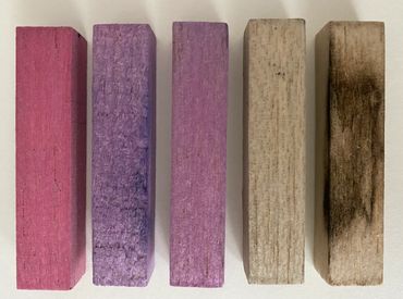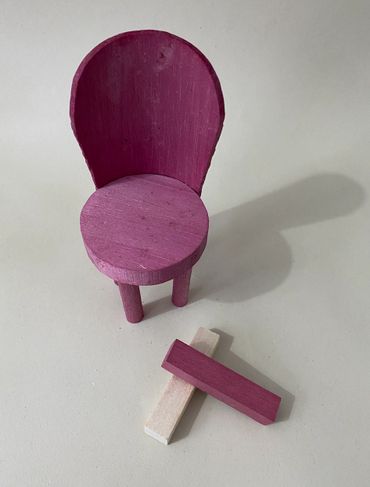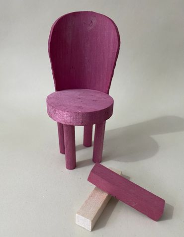 The second chair was a rectangular shaped back on a square seat, all parts of which were dyed with beetroot. The beetroot dyed chair had an almost dusty light pinecone shade of brown and darker patches where the dye base was touching the wood.