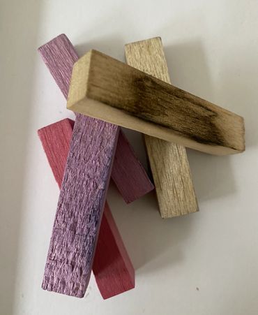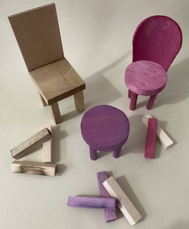 I focused on furniture and surfaces using plant and food waste. I decided to use natural dyes and natural pigments to stain wood. Being my first time working with wood, I chose Balsa as I wanted to create small scale lightweight models and wanted an extremely light coloured wood in order to properly experiment with how deeply the pigment would soak. I sketched out and made models of 3 chairs. The design and form for all 3 were inspired by different shapes and forms that I saw in nature. One of the most interesting process of the entire project was collecting different types of food waste and seeing how vibrant and dull the pigments are. I experimented with blueberries, raspberries, blackberries, red cabbage, beetroot and wine.